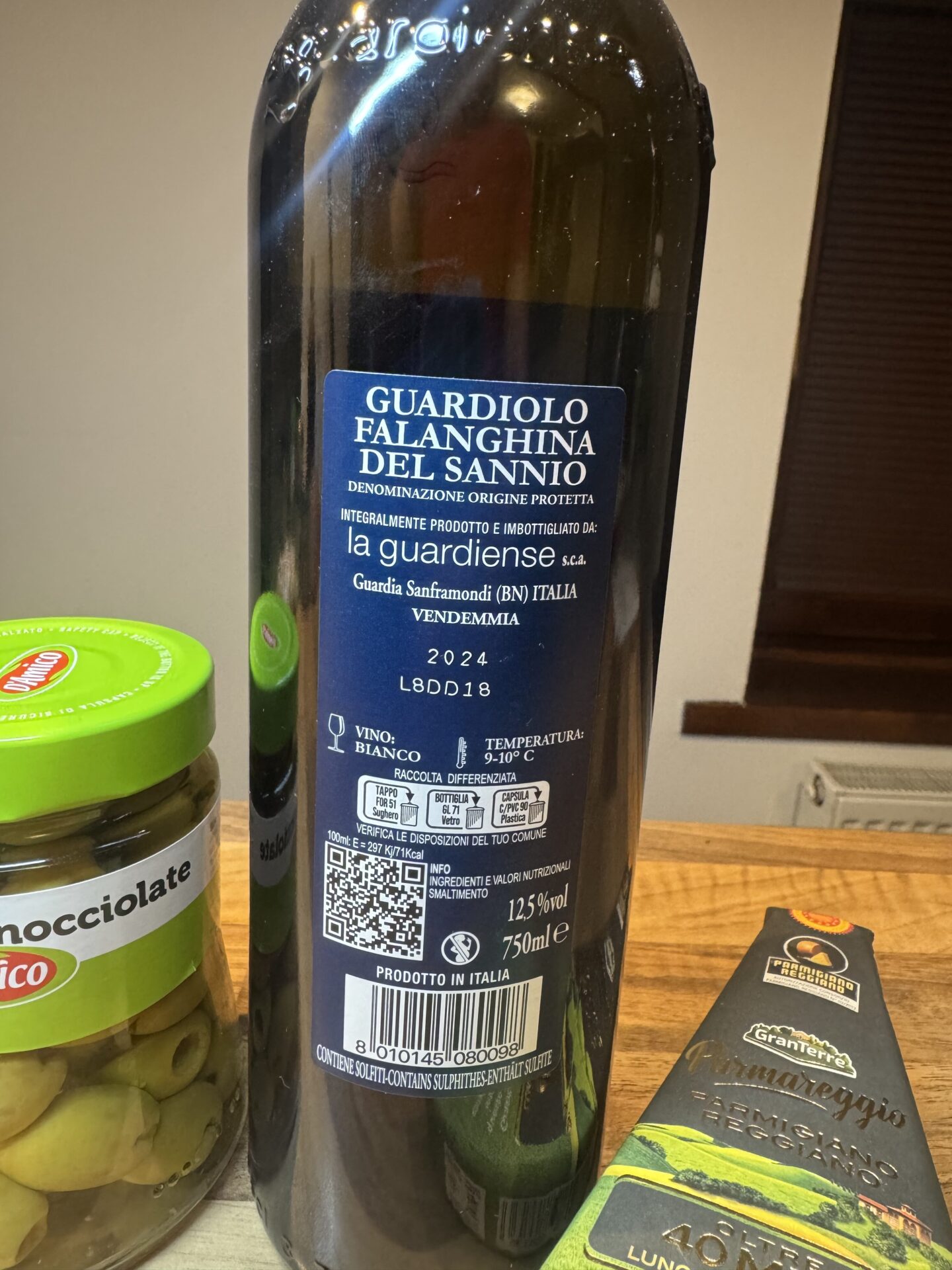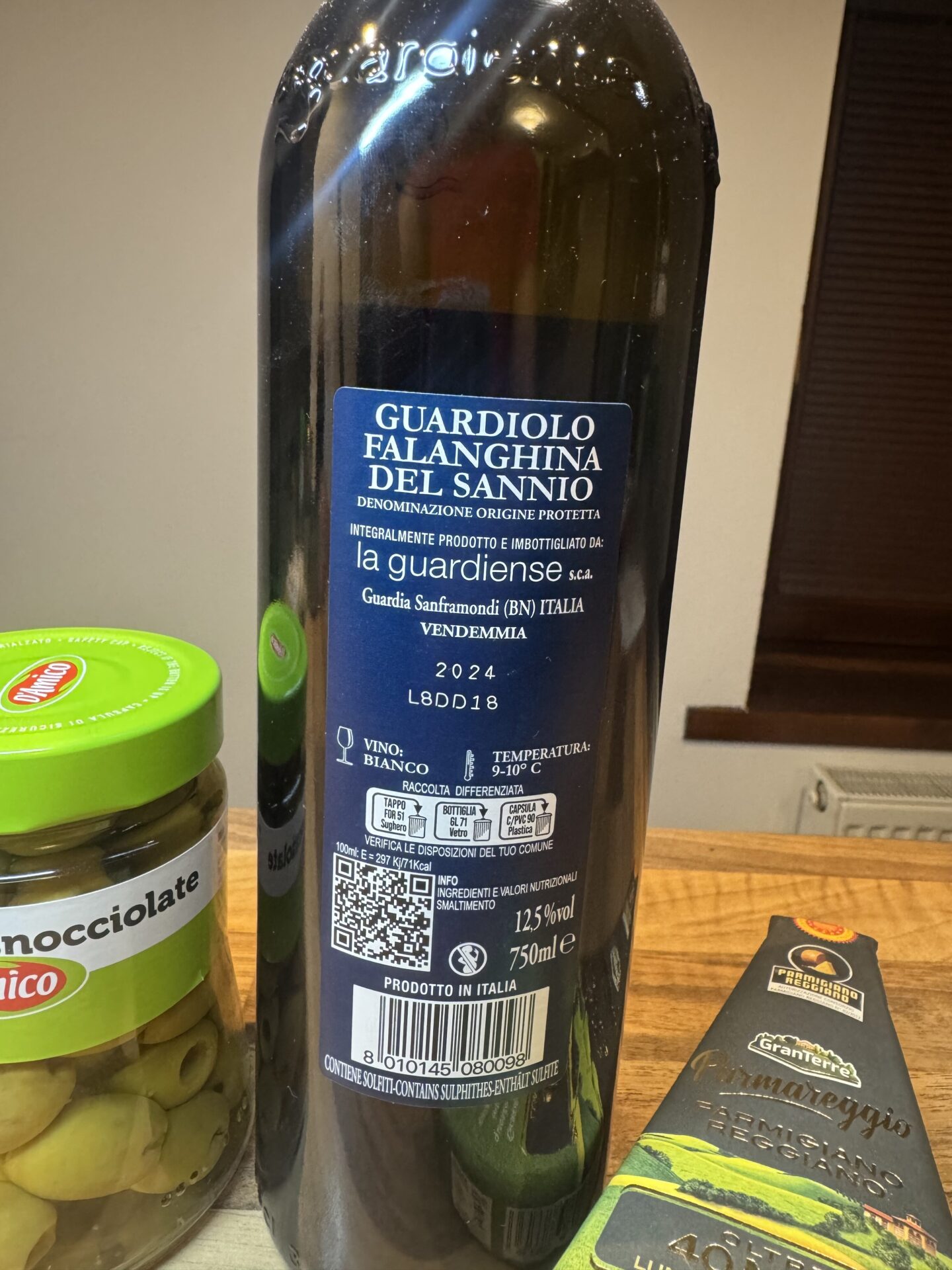 Svěží, minerální bílé víno krásně doplňuje jemně slanou chuť oliv a plnost krému z Parmigiana. Celek působí lehce, vyváženě a velmi italsky – jako aperitivo na terase v jižní Itálii. Balíček nabízí harmonii chutí, které se navzájem neruší, ale přirozeně podporují.